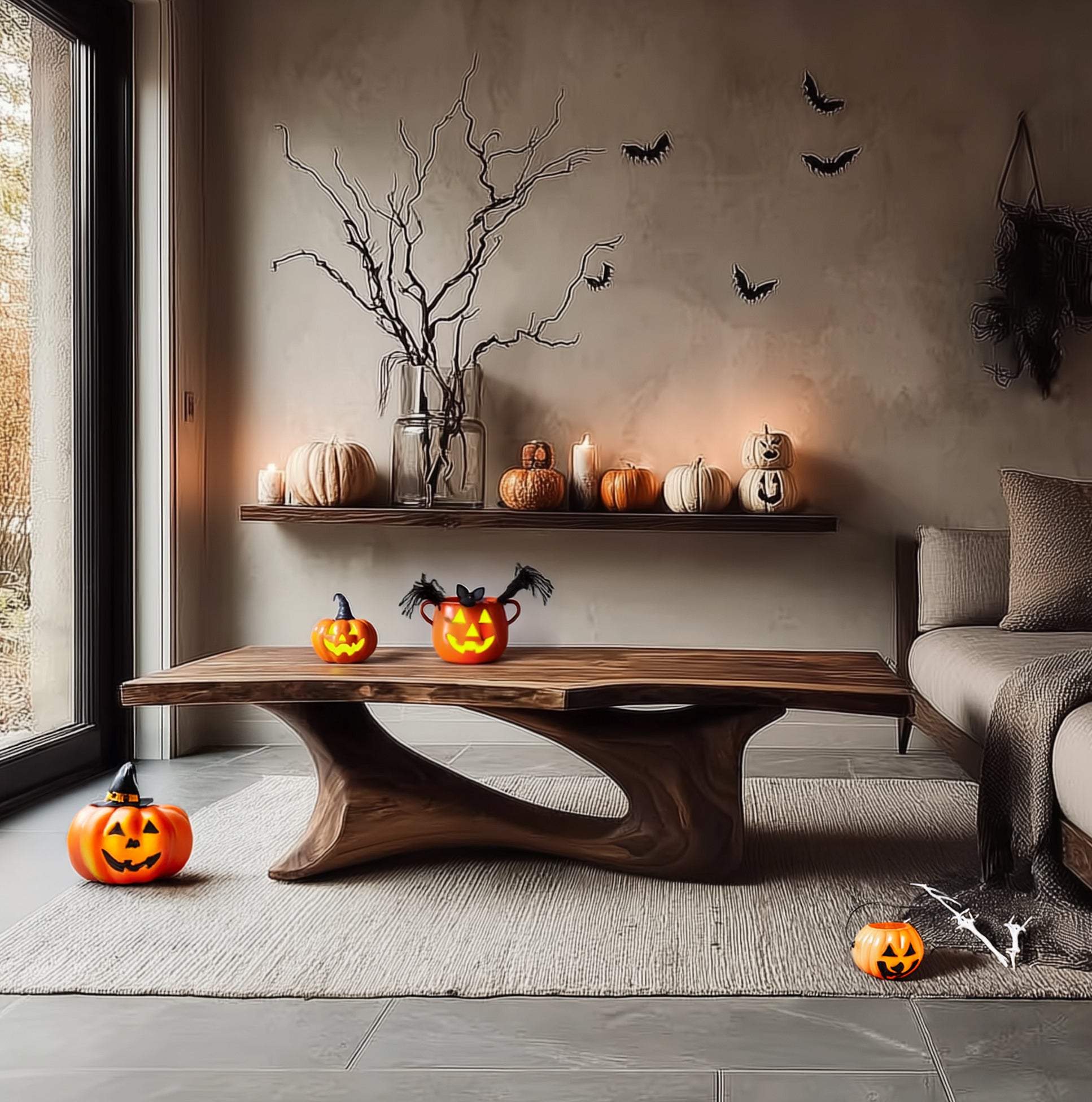 Live-Edge Konsolentisch aus Massivholz mit handgefertigten Astregalen